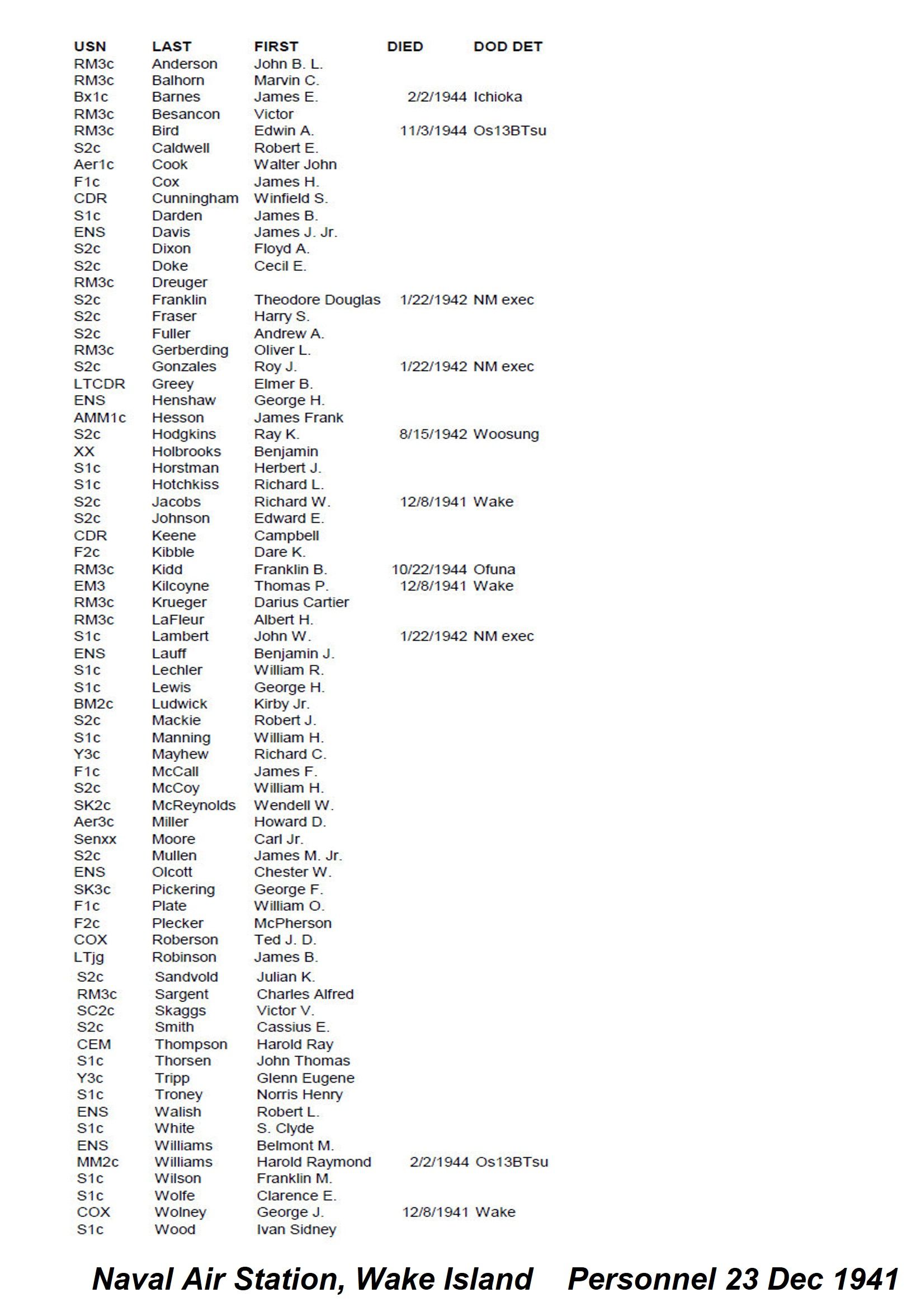 “We were both radiomen third class on Wake at the beginning of the war. We surrendered Wake Dec. 23, 1941, and on Jan. 12 we boarded a ship and sailed for Japan. We were at Ofuna prison camp until April 17, 1942, when we were taken to Kawasaki radio station about 10 miles north of Yokohama and 15 west of Tokyo.